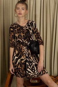 ומשמאל שמלת מיני של קסטרו (199 ש"ח), עם חגורת שרוך במותן, השוברת את המראה האחיד. הדפס הנמר הלא שיגרתי דומה יותר לגרפיטי ויוצר יותר עניין.