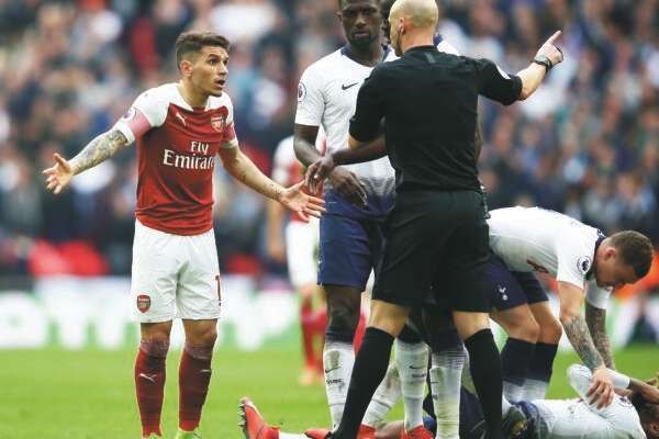 במחצית השנייה, אחרי לא מעט החמצות של ארסנל, הארי קיין הוכשל ברחבה בדקה ה-74 ובפנדל מדויק קבע שוויון 1:1. נגמר? ממש לא. בדקה ה-90 אובמיאנג הוכשל ברחבה והשופט הורה על הנקודה הלבנה, אבל לוריס הגיב נהדר והדף לקרן את הבעיטה הלא מרשימה של אמריק אובמיאנג. בתוספת הזמן, לוקאס טוריירה נכנס ברגל של דני רוז, טיילור לא היסס ושלף לו כרטיס אדום ישיר.