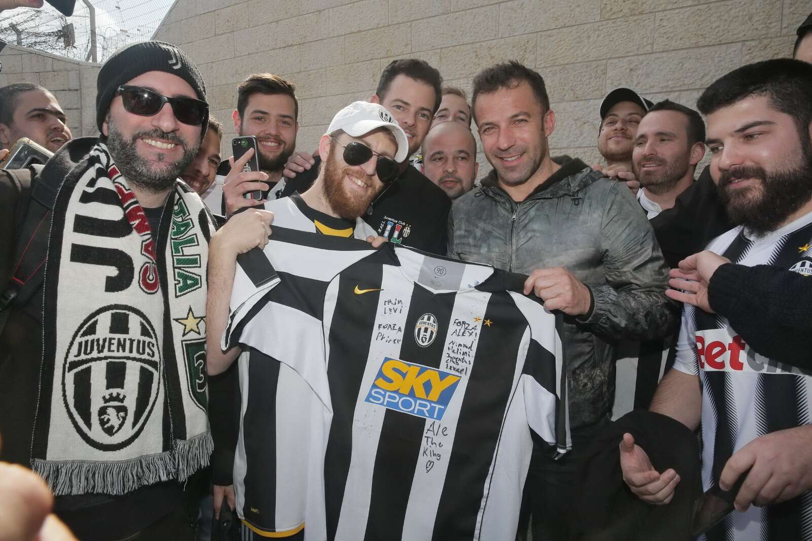 דל פיירו שנחת בטיסה ישירה מלוס אנג'לס, התקבל על ידי עשרות אוהדים נלהבים של יובנטוס שהמתינו לו ביציאה מטרקלין מצדה עם חולצות וצעיפים.