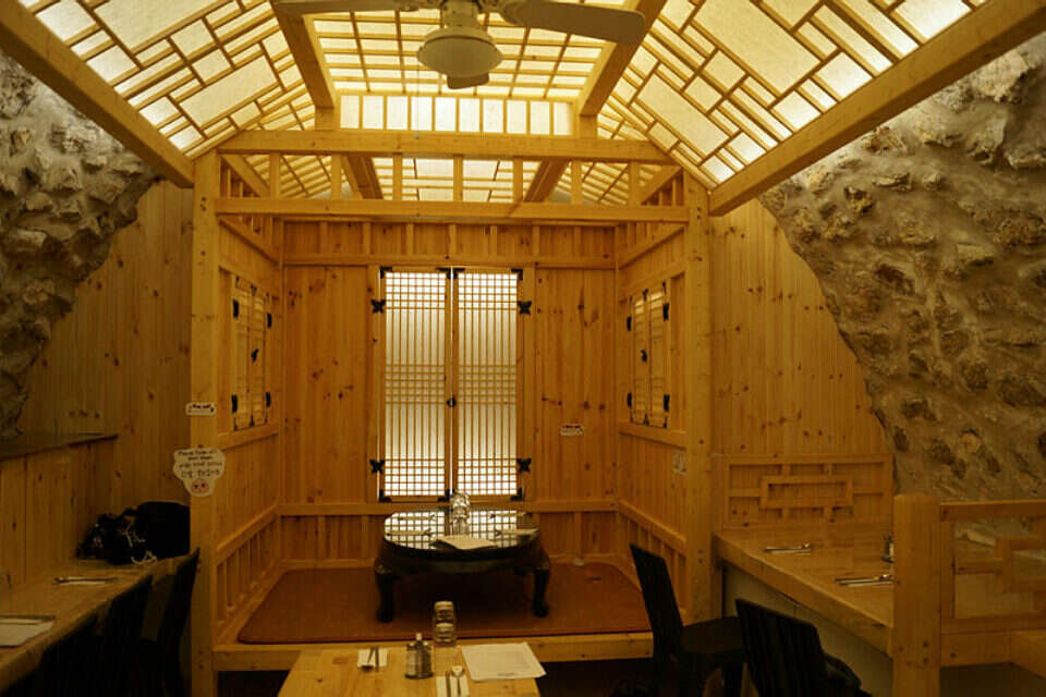 המסעדה הקטנטנה שמתחבאת ברחוב חב"ד הצר, בתוך חלל אבן מרהיב, משלבת עבודת נגרות נעימה, בסגנון אוריינטלי המשלב עץ לא מעובד ונייר, עם האבן החשופה, מה שיוצר תחושת מרחב ונעימות גם בחלל קטן. במסעדה כמה שולחנות סטנדרטים ופינה עם במה מוגבהת מעץ, שבה ניתן לאכול כמו שנהוג בקוריאה, בישיבה על פוטונים (מחוממים!) ולא על כיסא.