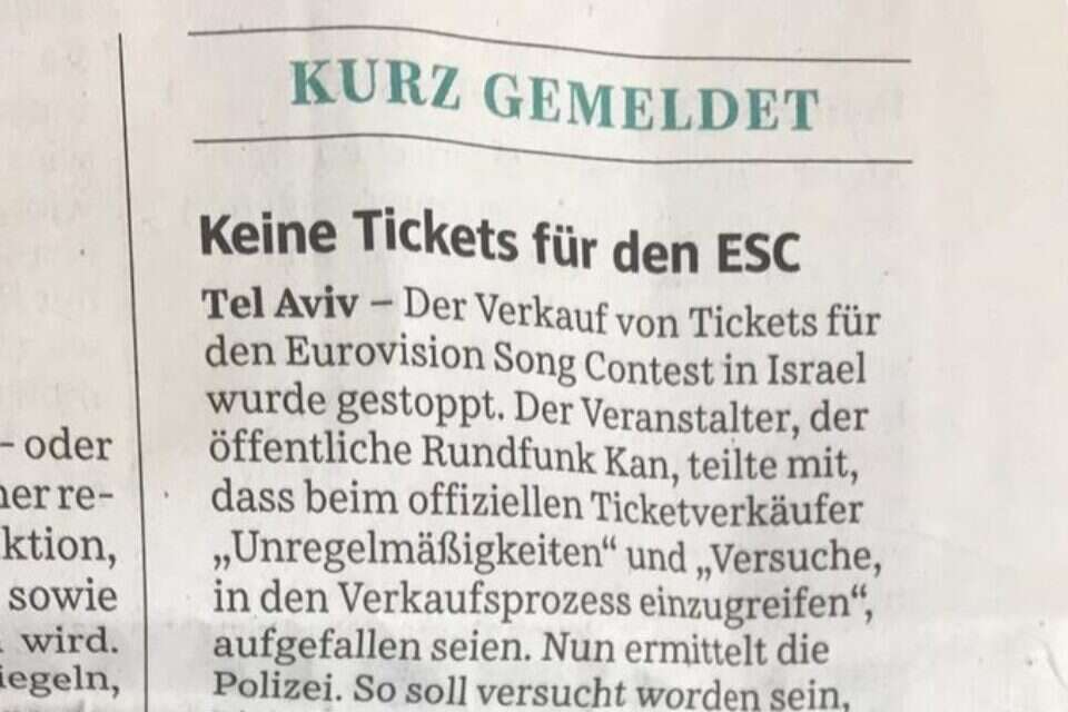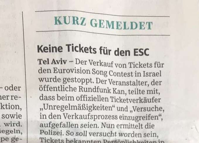 קומבינות מקומיות בפרסומים זרים: פרשת הכרטיסים לאירוויזיון והמחירים הגבוהים דווחה אתמול (ג') גם בגרמניה.