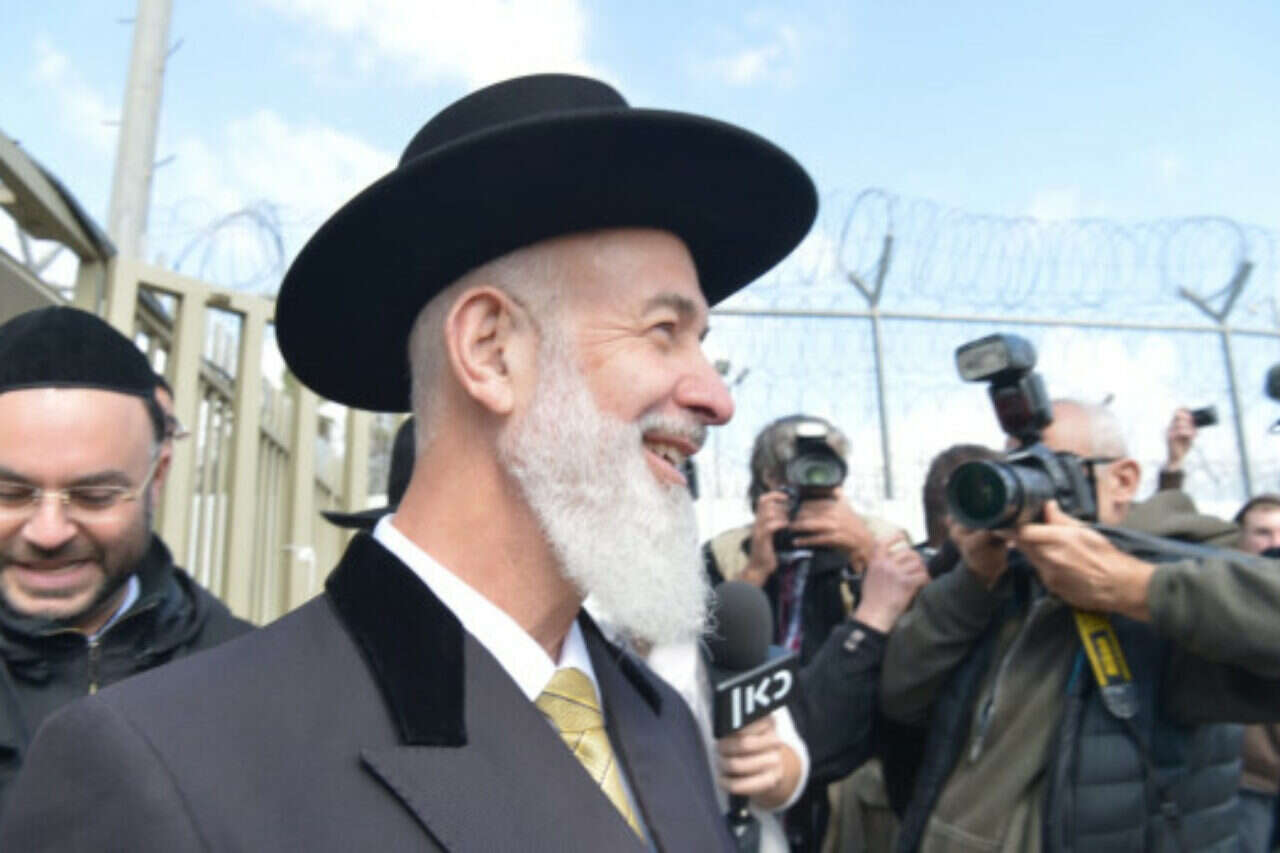 נידון לשלוש וחצי שנות מאסר. הרב יונה מצגר עם שחרורו מהכלא, היום // צילום: יוסי זליגר