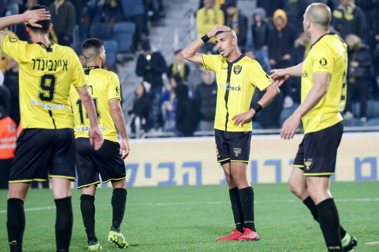 שחקני בית"ר ירושלים בסיום ההפסד להפועל ת"א באטדי, אתמול. כישלון מתמשך // צילום: דני מרון