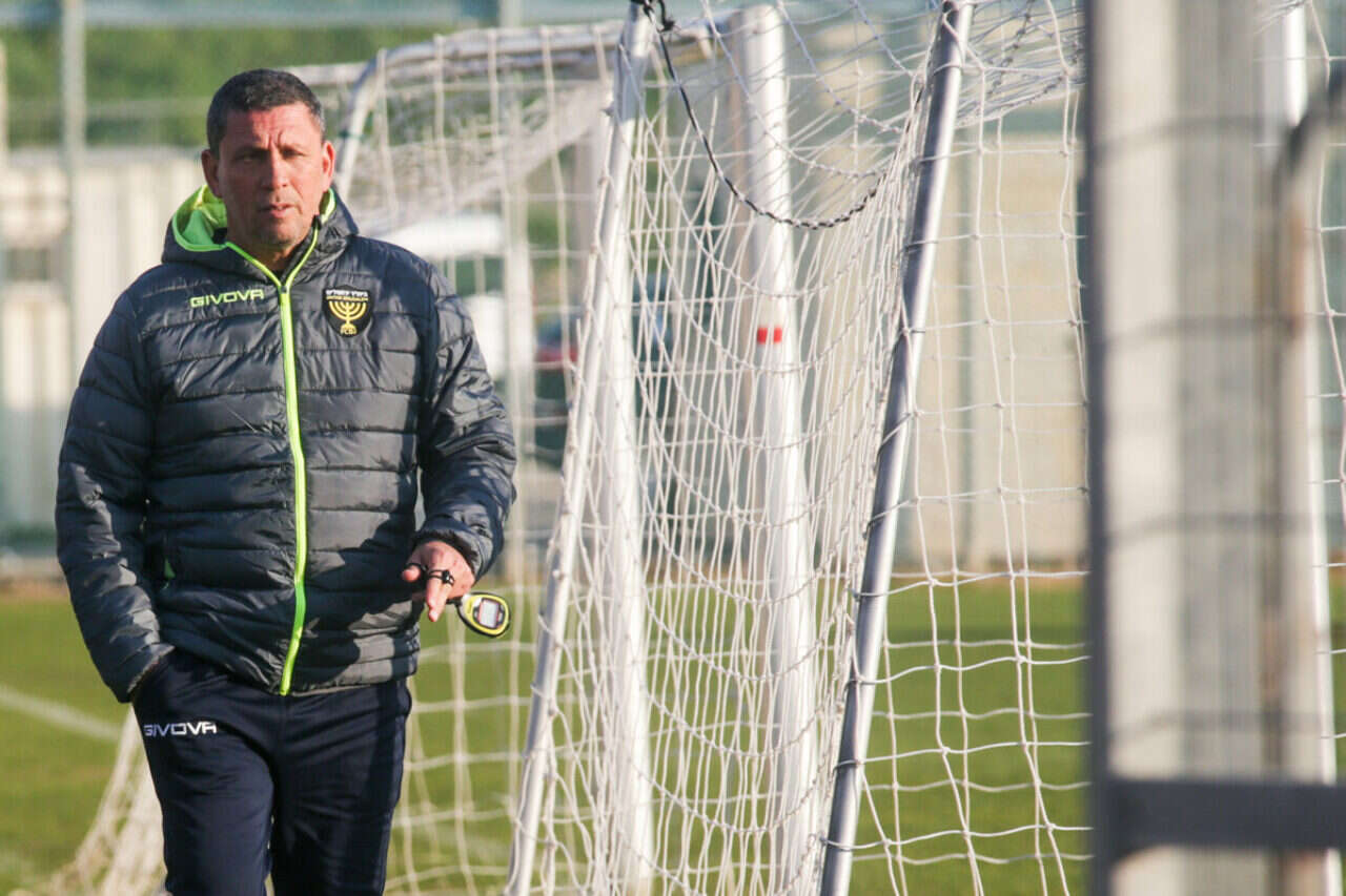 קלינגר וניסן יחזקאל, אתמול באימון. עוזר המאמן לא הסכים להישאר לבד // צילום: אורן בן חקון