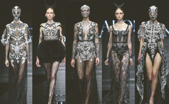 התצוגה התחילה עם מבחר שמלות לבנות מבד שיפון בהן ריחפו הדוגמניות על המסלול, מחזה שהיה חלומי להפליא. לאחר מכן ובניגוד מוחלט, עלו למסלול מראות בצבע שחור דרמטי ואפל שעוצבו מבד תחרה אלגנטי, סקסי ודרמטי.