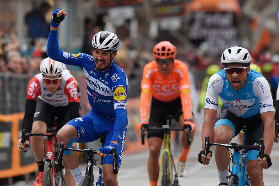 צ'ימולאי הגיע לקו הסיום אחרי 195 ק"מ כשהוא צמוד לכמה מרוכבי הספרינט הגדולים בעולם כשמימינו אליה ויויאני ומנצח הקטע ג'וליאן אלפליפ ומשמאלו הרוכב האיכותי, פטר סאגאן.
