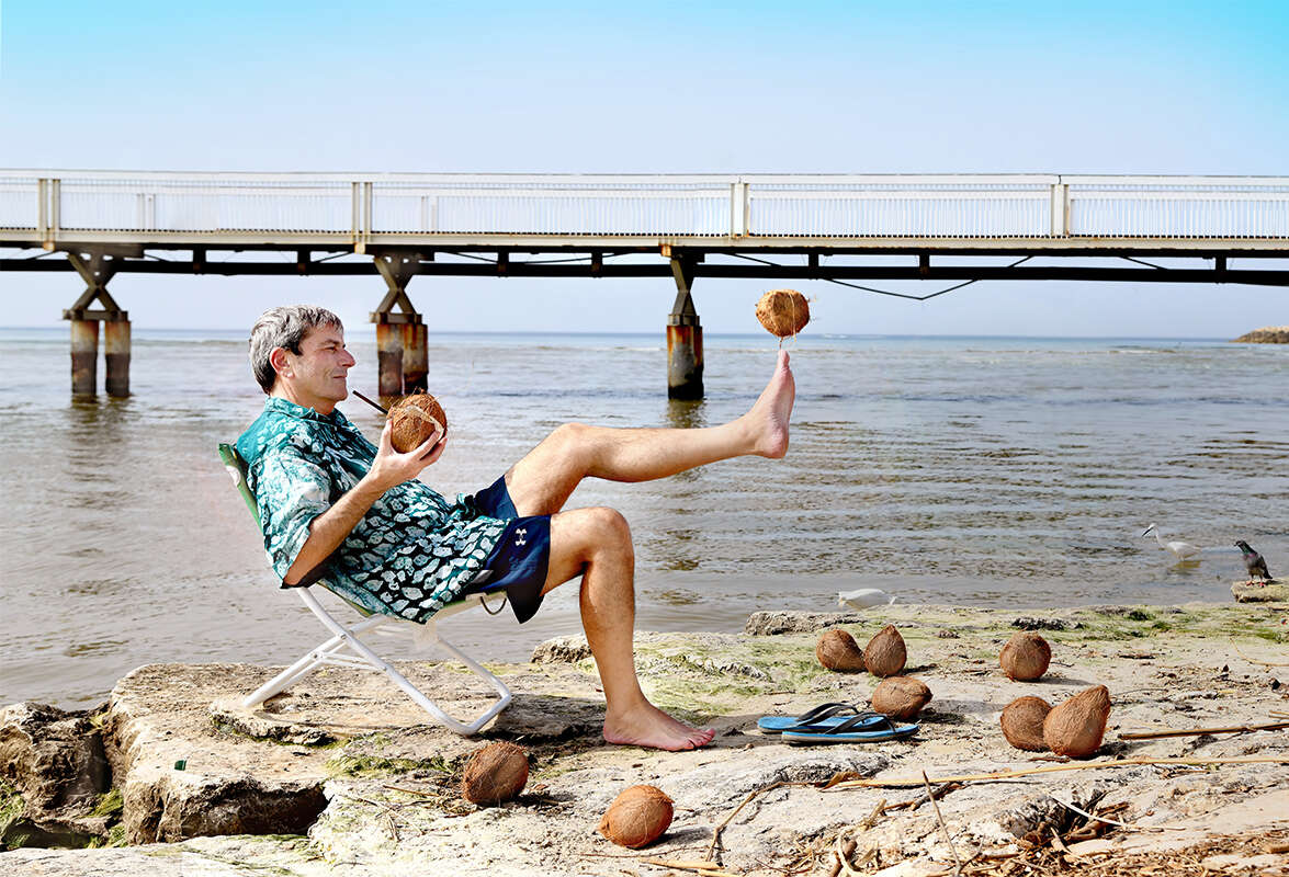"תקשיב, אני בן אדם של ים, בריכה, קיץ, קפה בטונות, סיגריות, פרלמנטים של חברים וחיים הכי תוססים שאפשר. ופתאום אני מוצא את עצמי בסירה ששטה לאי. שעה של שמש מטורפת על הפנים. היה לי כל כך קשה, ואין אחורה פנה. אתה לא בתל אביב.