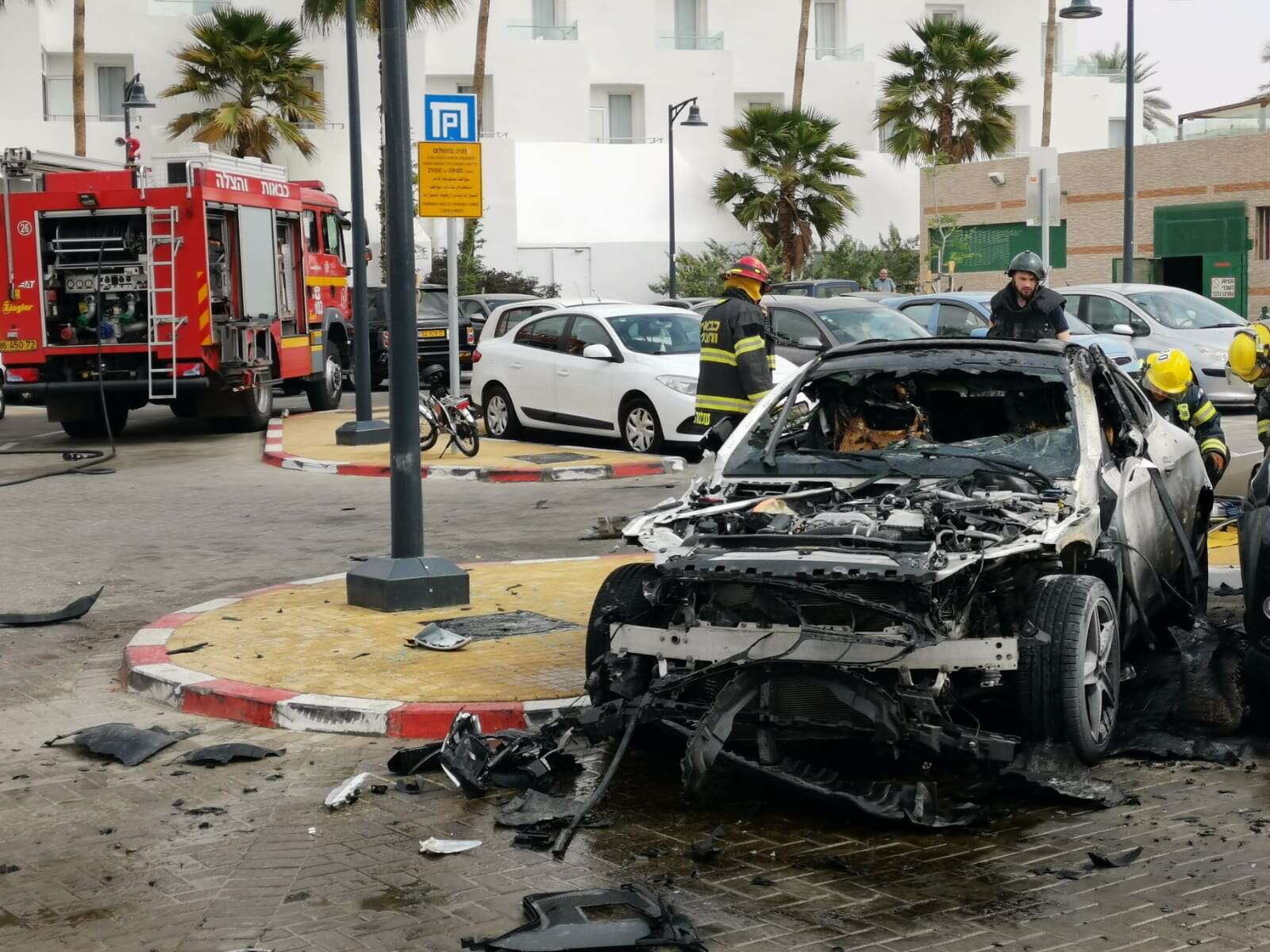 במקביל, לאחר שהאש החלה להתפשט לכלי רכב נוספים, הוזעקו למקום ארבעה צוותי כיבוי אש שביצעו פעולות כיבוי ופעולות למניעת התפשטות הבעירה לרכבים נוספים, תוך כדי סריקות אחר נפגעים נוספים ובסיוע לכוחות המשטרה בזירה. חוקר דליקות מטעם שירותי כבאות הגיע למקום.