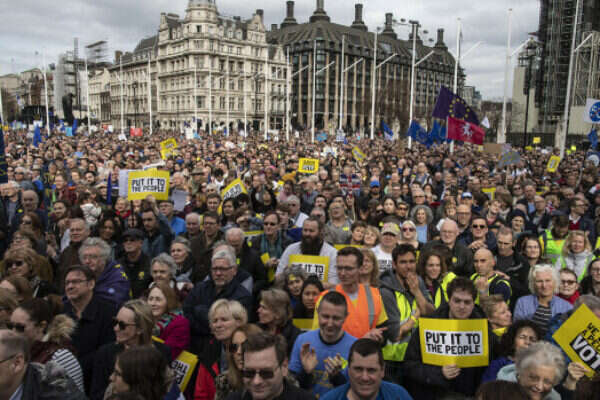 מאות אלפי אנשים צעדו היום (שבת) במרכז לונדון וקראו לראש ממשלת בריטניה, תרזה מיי, לסגת מהסכם הברקזיט ולהישאר באיחוד האירופי.