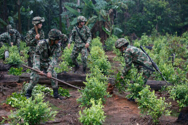 חקלאים מגדלים קוקה בקולומביה // צילום: איי.פי
