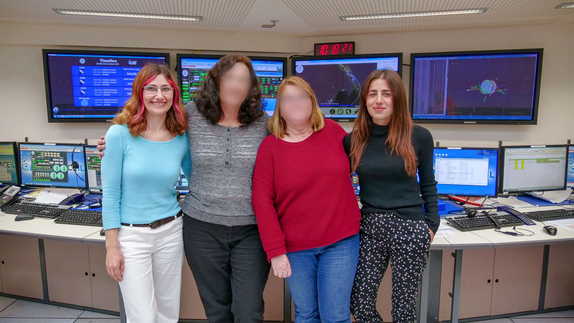 לשתיים מהן, דורית וליאורה, העובדות בתעשייה האווירית מהנדסות תוכנת חלל ותיקות , אסור להיחשף, כי הן מעורבות גם בפרויקטים נוספים. עמן עובדות גם מאי וייסמן, בת 22, עדיין לפני התואר בהנדסה, והמהנדסת דניאלה גיא-רון, מעמותת SpaceIL.