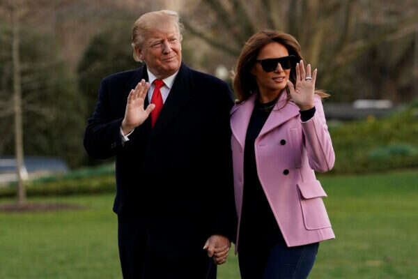 אבק כוכבים: מלניה טראמפ חזרה מפאלם ביץ זוהרת מתמיד לצד בעלה, דונלד טראמפ • נעליים שטוחות וז'קט אחד מושלם