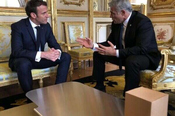 דנו במגוון נושאים. יאיר לפיד (מימין) ועמנואל מקרון, היום