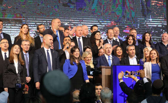 "אני מבקש מעומק ליבי להודות לכולכם אתם הבאתם הישג דמיוני וכביר כמעט בלתי נתפס. הבאתם הישג כביר בלתי נתפס, מול תקשורת מגויסת (קריאות בוז מהקהל) בתנאים בלתי אפשריים. זה הישג מדהים. אני רוצה להגיד לכם גם משהו אישי. אני מאוד נרגש שעם ישראל שוב נתן בי אמון בפעם החמישית ועוד אמון גדול יותר. אני אומר לכם, הוא שוב נתן אמון. זה חסר תקדים, מתי קיבלנו כל כך הרבה מנדטים? אני לא זוכר.