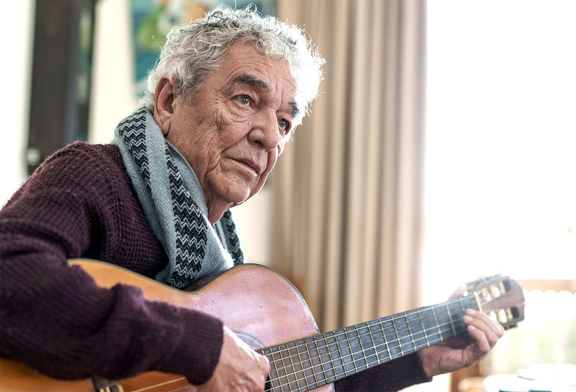 בשיער מאפיר, לבוש בסוודר ובג'ינס ישנים, הוא פוסע בדירה בצעדים קטנים, מדבר לאט ונראה חלוש, כמעט כבוי. כשאני שואל על מצבו הבריאותי, הוא עונה מייד: "הכל בסדר, בעיות בריאות אין לי, ברוך השם. אני לא מהאנשים שלוקחים כדורים או הולכים לרופאים".