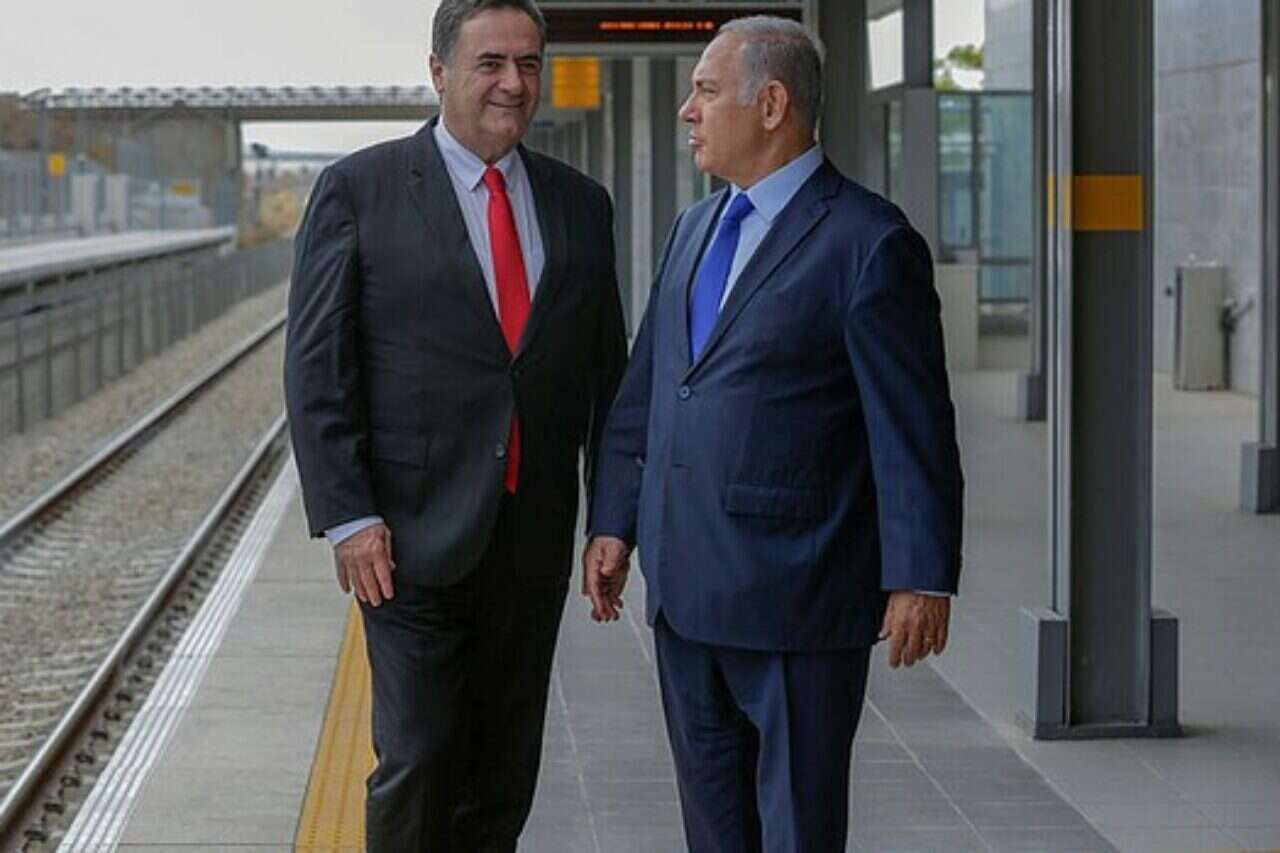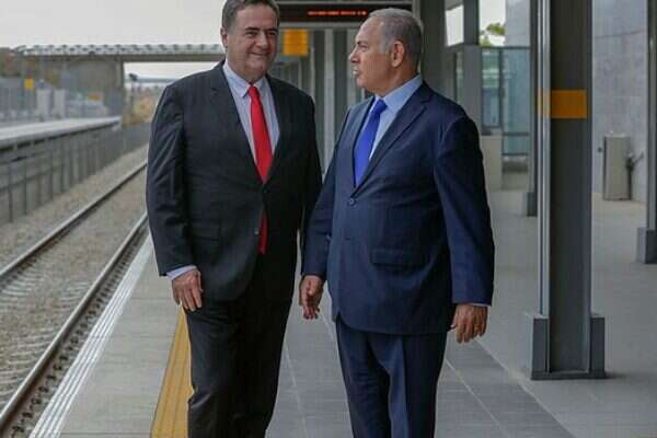 נתניהו ושר התחבורה ישראל כץ ברכבת // צילום: יהודה פרץ