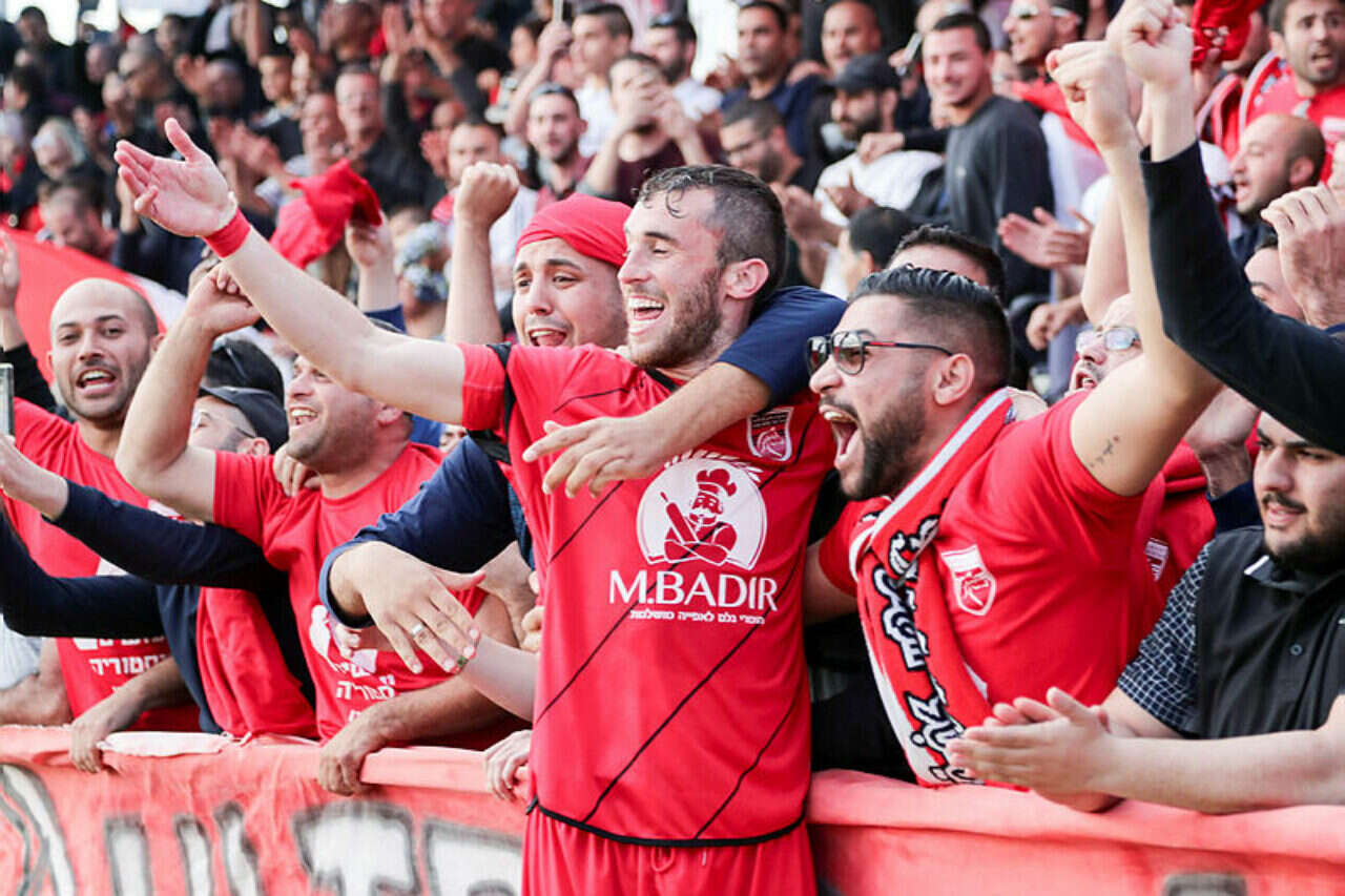 שחקני כפר קאסם חוגגים, היום // צילום: דני מרון