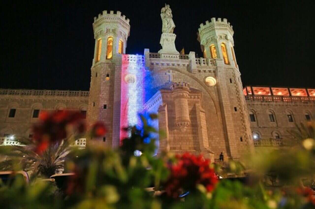ירושלים מזדהה עם אסון קתדרלת נוטרדאם שבפריז ומאירה את כנסיית נוטרדאם של ירושלים בצבעי הדגל הצרפתי הלילה (חמישי).