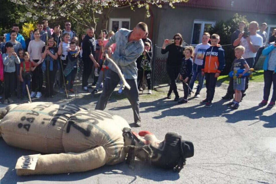 מדיווח מקומי עולה, כמו כן, כי הטקס נערך משל היה "יום שישי הטוב" שבו נצלב ישו. בפועל, בעיירה המרוחקת כ־250 קילומטרים מקרקוב, החליטו לערוך טקס עתיק שבו נערך מעין משפט ליהודה איש קריות, בהשתתפות אנשי העיירה. הלכה למעשה, הבובה נתלתה בכיכר העיר החל משעות הבוקר, כאשר אחר הצהריים החל המשפט שלה.