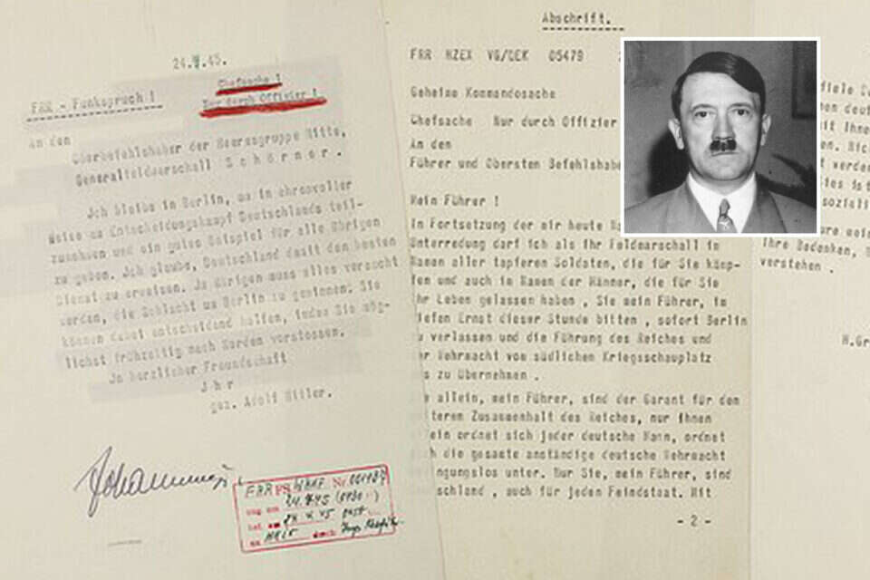 מכתבו של היטלר נמצא יחד עם עותק ממכתב שהעביר לו גנרל שרנר, בו מתחנן הקצין בפני הצורר הנאצי לעזוב את ברלין, ובמהרה: "אני מבקש ממך, בשעה קריטית זו, לעזוב את ברלין ולקחת על עצמך את הפיקוד מהצד הדרומי. אם אתה תיפול, כך תיפול גם גרמניה. מיליוני גרמנים מחכים להזדמנות לבנות מחדש את גרמניה – יחד איתך".