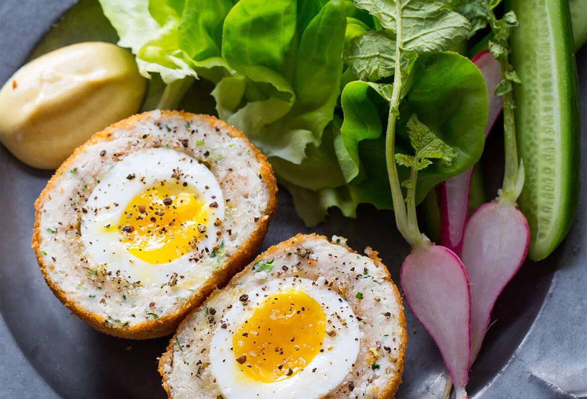 צילום: איתיאל ציון // ביצה סקוטית. במעטפת בשר עם ציפוי