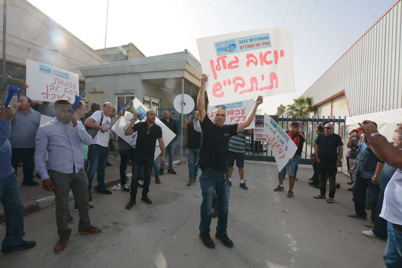ההפגנה בכניסה למפעל // צילום: דודו גרינשפן