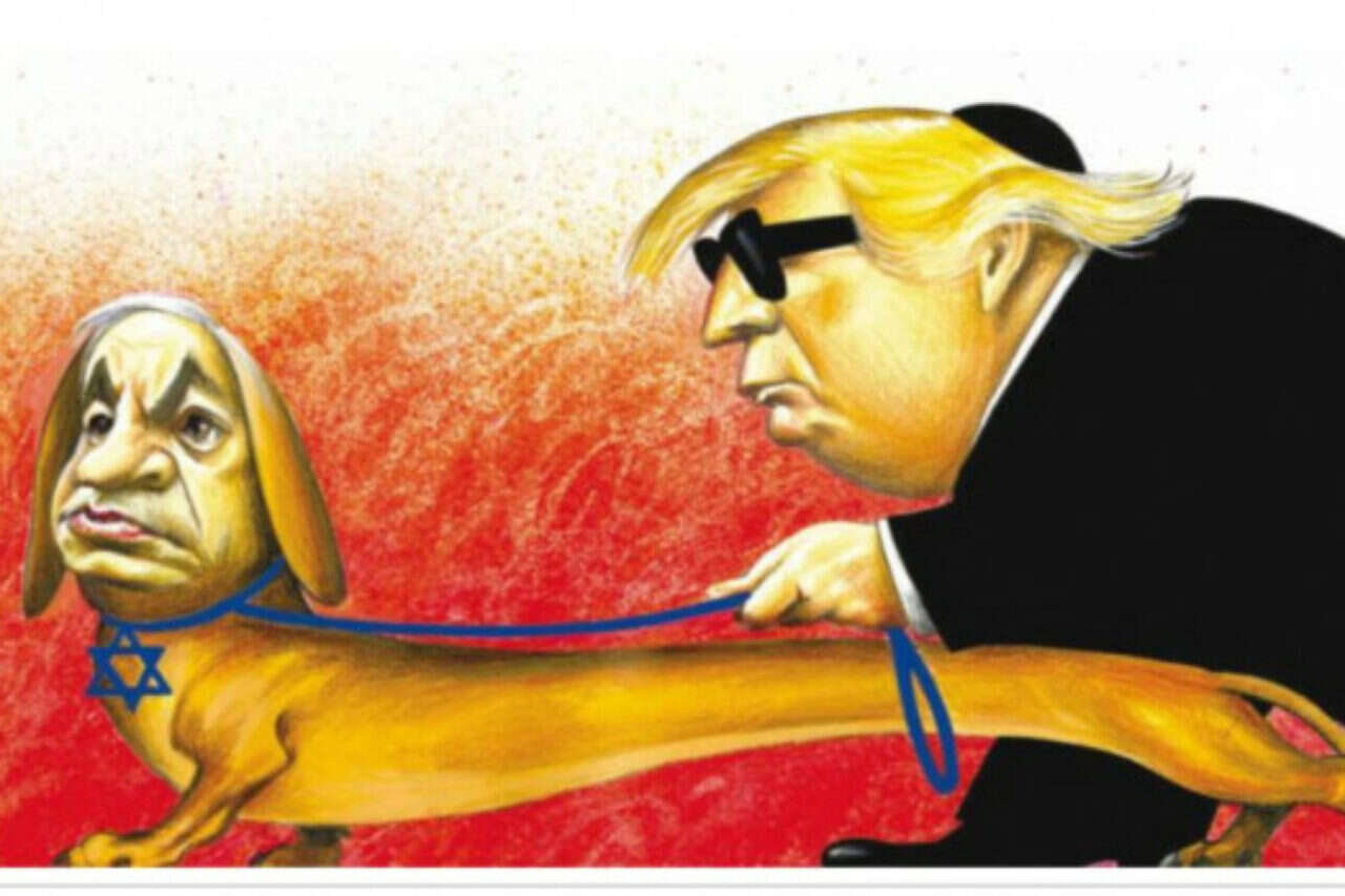 "זה איור שבעידן אחר היה יכול להופיע מעל דפיו של דר שטירמר. יהודי בדמות כלב, קטן אך תככן, שמוביל אמריקני מטומטם שנותן בו אמון. טראמפ השנוא עבר גיור כשצויר עם כיפה לראשו. המשרת הנאמן לכאורה, שלמעשה הוא האדון האמיתי. הקריקטורה הזו עונה לשורה כה ארוכה של מאפיינים אנטישמיים, עד שהדבר היחיד שחסר לה הוא סימן של דולר. יש דרכים לגיטימיות למתוח ביקורת על מדיניותו של הנשיא כלפי ישראל, באיורים ובמלים. אבל אין שום דבר לגיטימי בקריקטורה הזו.