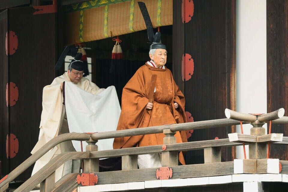 בטקס רב רושם בבירה טוקיו צפוי הקיסר, בלוויית ראש הממשלה שינזו אבה, להכריז על ירידתו מכס המלוכה ועל הכתרתו של בנו, נרוהיטו, שתתקיים מחר.
