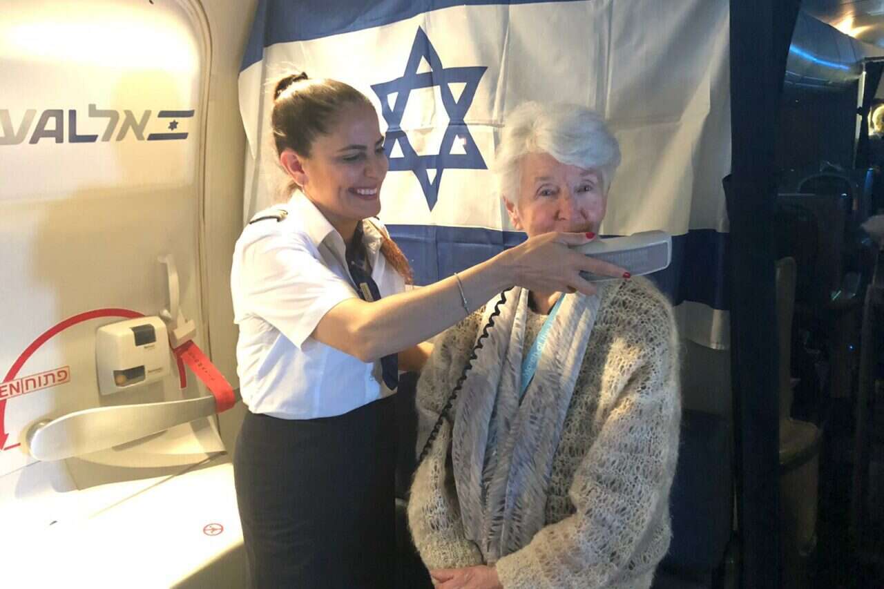 במהלך הטיסה חולקו לנוסעים סיכות עם דגלי ישראל וגלויות עם תפילת הדרך.