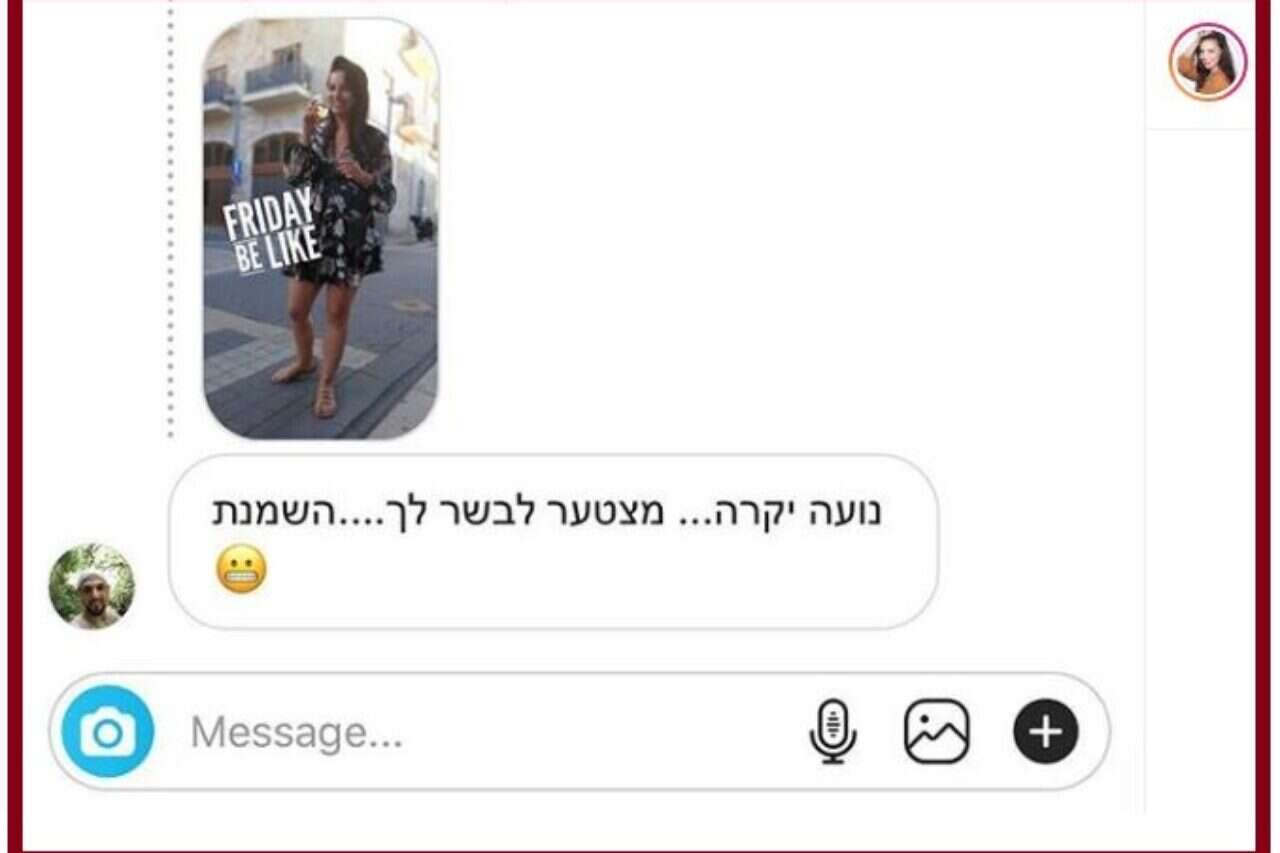 "נועה יקרה, מצטער לבשר לך, השמנת": כך בחר גולש "לפרגן" לעיתונאית האוכל ומגישת תוכנית הבוקר נועה רוזין, בהודעה פרטית ששלח לה באינסטגרם, ובלי לשכוח לסגור את ההודעה המקסימה באימוג'י חצוף.