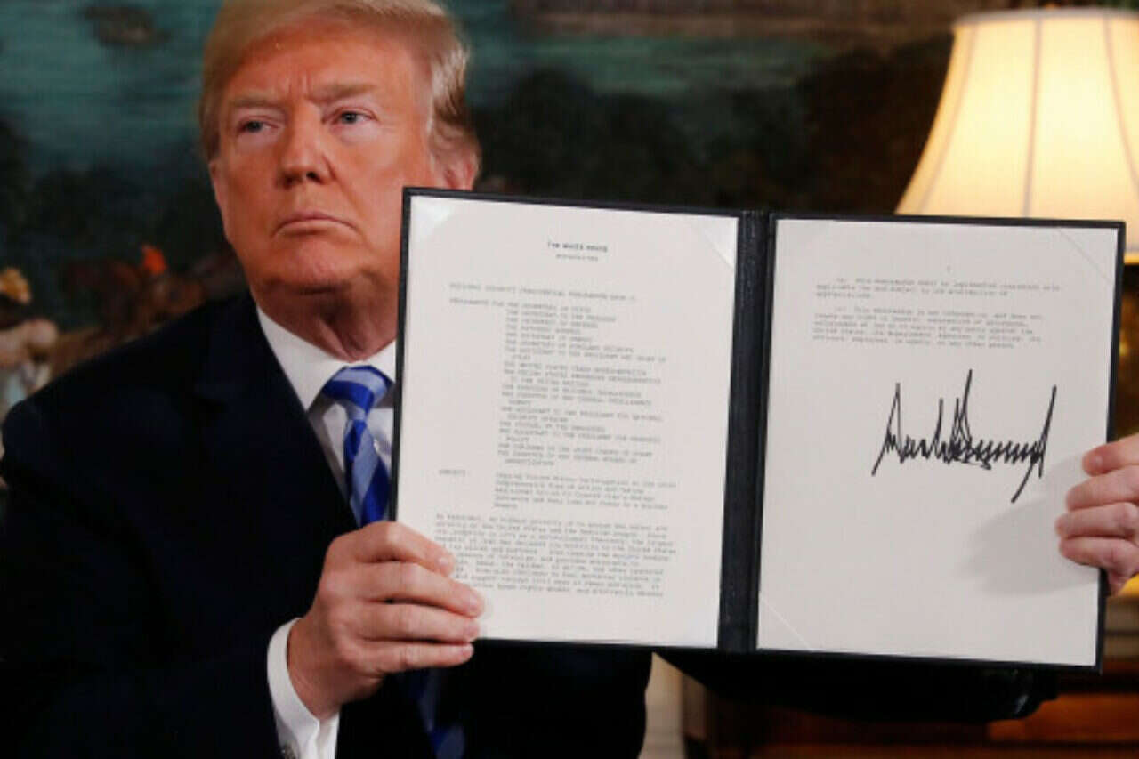 נשיא ארצות הברית טראמפ לאחר החתימה על הסנקציות החדשות על איראן, צילום: רויטרס
