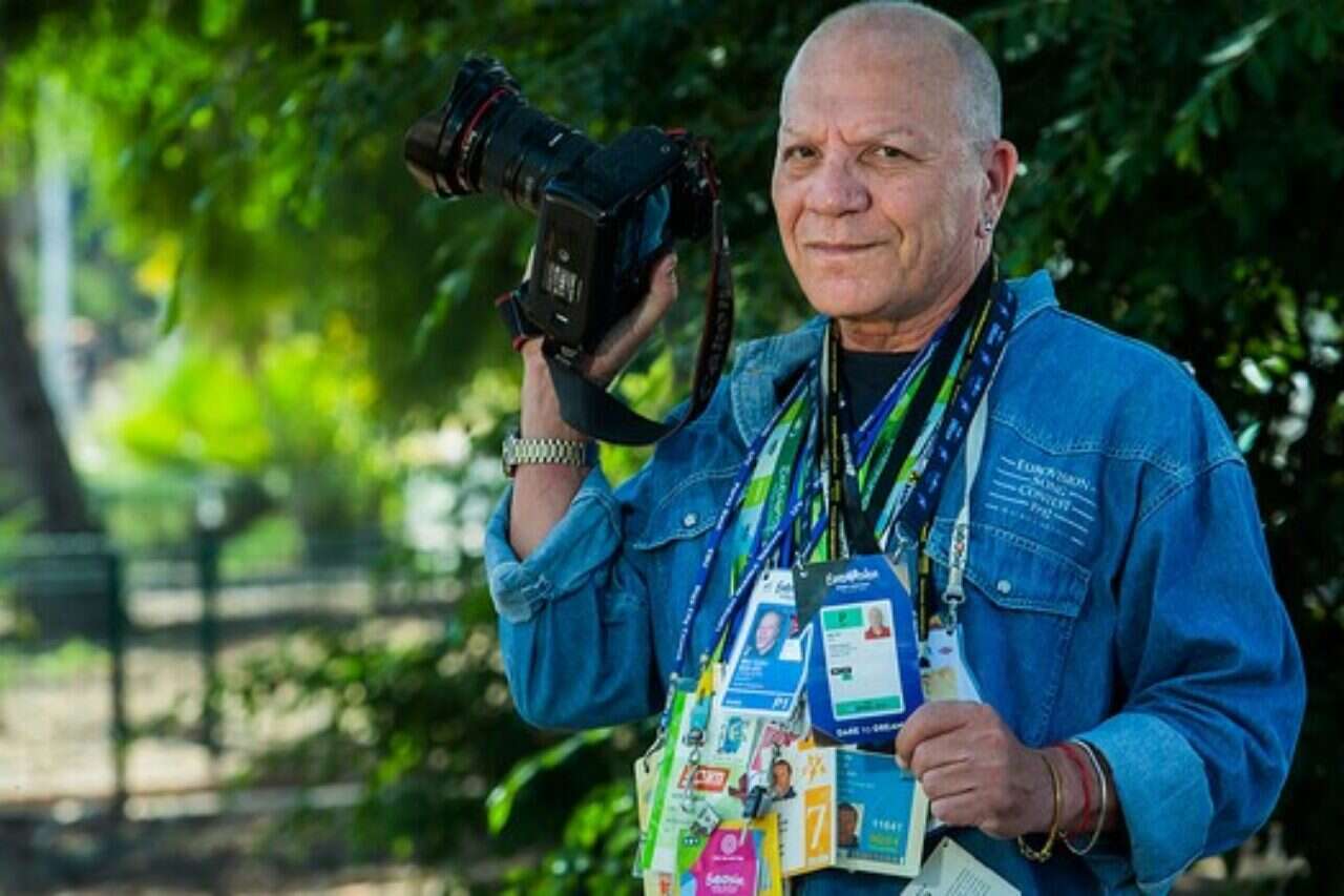 בתוך מחול 1,000 אנשי המדיה שהגיעו לסקר את האירוויזיון בישראל, מספר מכובד בפני עצמו, בולט בנופו השונה צלם אחד. הוא בן 67, לבוש בחולצת ג'ינס נצחית וטורף את אווירת האירוויזיון כבר עשרות שנים באופן פעיל.
