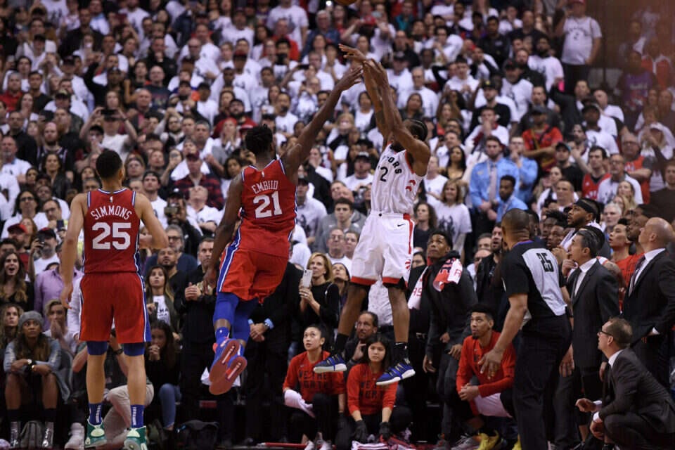קוואי לאונרד נפרד מג'ימי באטלר. כל 8 העולות לסיבוב השני זורקות פחות שלשות מאשר בעונה הסדירה // צילום: גטי אימג'ס