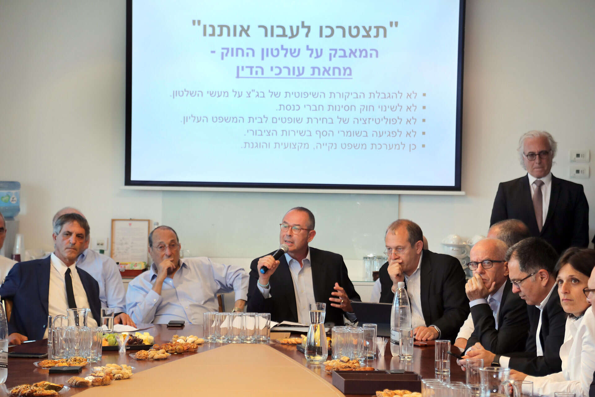 לא כל עורכי הדין תמימי דעה עם היוזמה להתנגד לחוקי המשילות של הממשלה. אתמול (שני) בכינוס חירום שנערך במשרד עו"ד גולדפרב-זליגמן, השתתפו עשרות עורכי דין, בהם גם בכירים ומוכרים, במטרה לגבש אסטרטגיה למאבק ביוזמות השלטוניות להגבלת כוחה של הרשות השופטת.