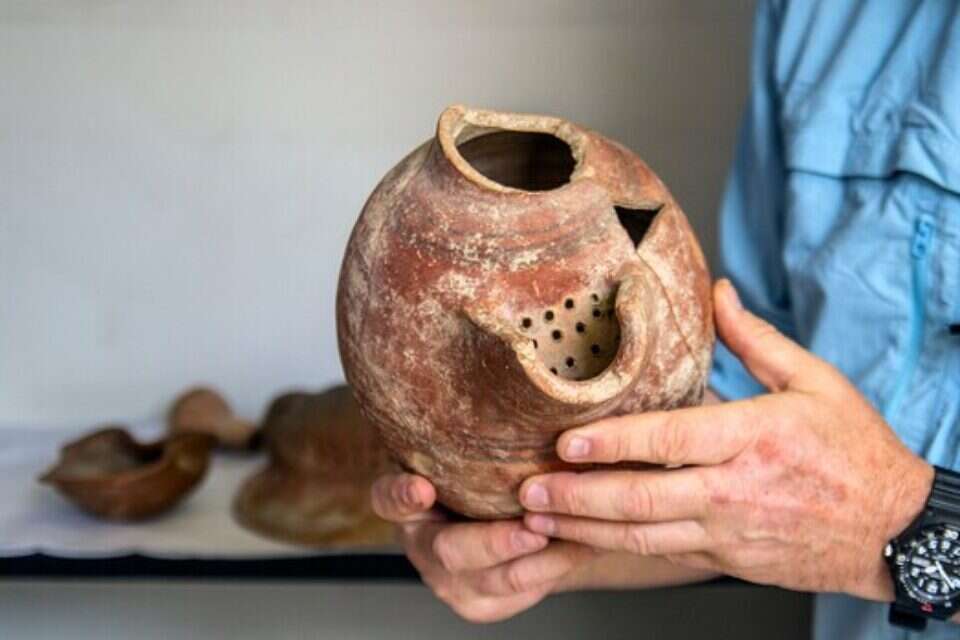 פך בירה מחפירות תל צפית/גת, ממנו הופקה בירה פלישתית // צילום: יניב ברמן, באדיבות רשות העתיקות