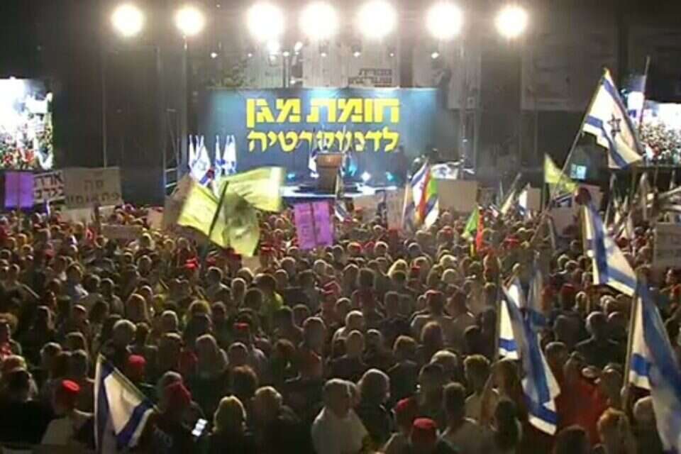 עשרות אלפים הגיעו הערב (מוצ"ש) לרחבת מוזיאון תל אביב להפגנת המחאה נגד חוק החסינות ופסקת ההתגברות, שאורגנה על ידי מפלגות האופוזיציה, תחת הכותרת: "חומת מגן לדמוקרטיה".