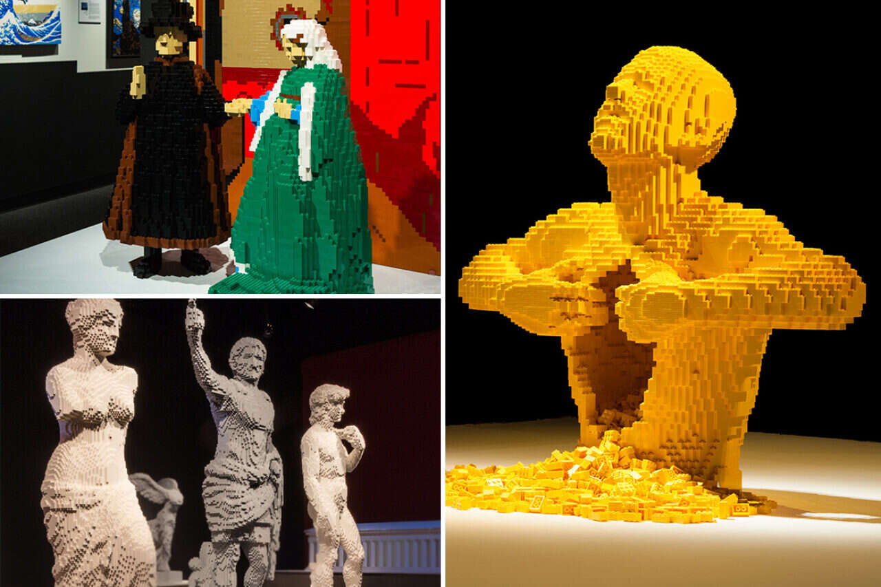 המיצג נבנה מיותר מ-10 מיליון קוביות לגו בצבעים ובגדלים שונים, שיחדיו מרכיבות את יצירות התערוכה שנקראת "האומנות שבלבנים" (The Art Of The Brick).