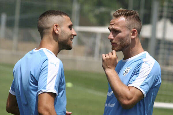 אנדי הרצוג בשיחת פתיחה, הבוקר באימון בשפיים // צילום: אלן שיבר