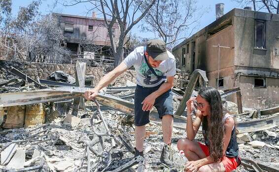 "הבית של חניתה נמחק לחלוטין", אומר אברהם בדמעות. "המצב שלי ושל לאה קצת יותר טוב, הבית שלנו הוא בין עשרת הבודדים שלא נשרפו מבפנים, ולכן אני מרגיש קצת הקלה. זאת תחושה מוזרה להרגיש בר מזל במצב כזה קשה".