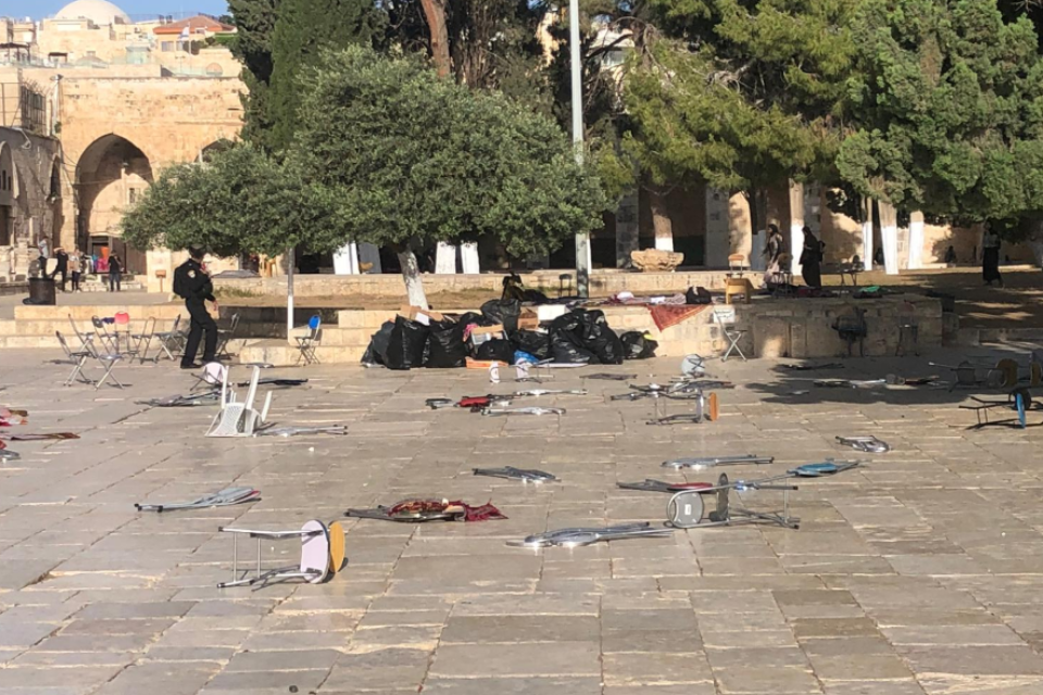מפרי הסדר יידו אבנים, השליכו כיסאות וזרקו חפצים שונים. בעקבות כך, הורה מפקד מחוז ירושלים לכוחות המשטרה להיכנס להר הבית ולטפל במתפרעים. מפקד המחוז, ניצב דורון ידיד, נמצא במקום ופיקד על כלל הכוחות הפרוסים בהר הבית.