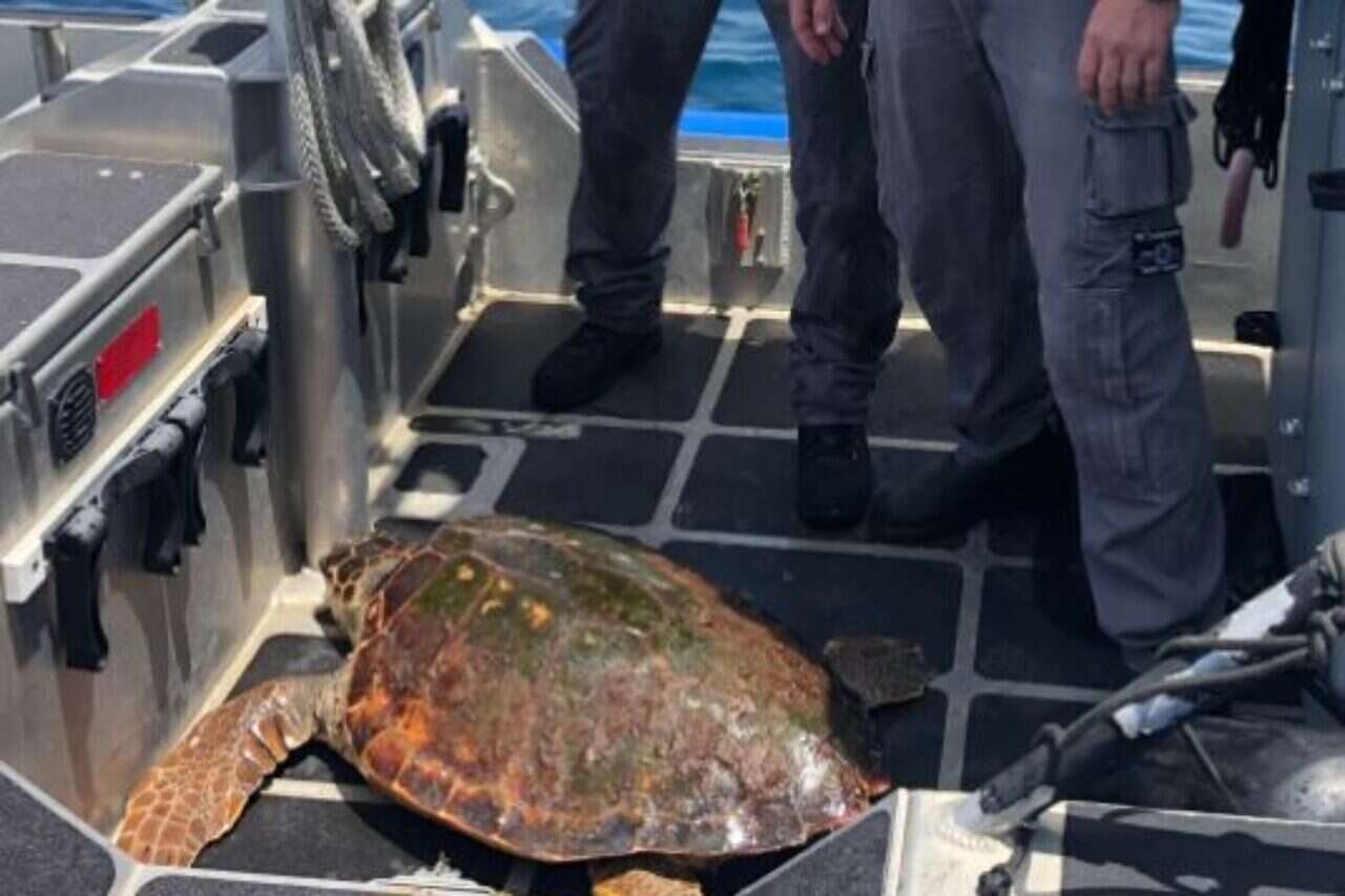 צב ים פצוע אותר מול חופי אשקלון וחולץ על ידי השיטור הימי במהלך השבת.