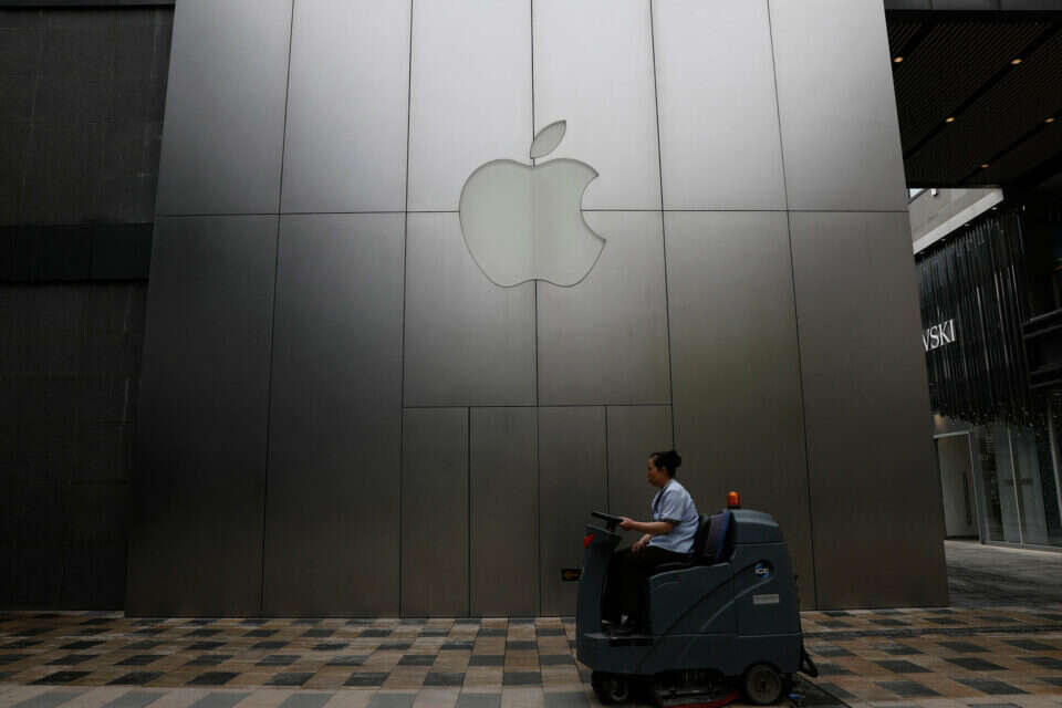 ניקו את העמודים. חזית חנות אפל בסין, צילום: אי. פי. איי
