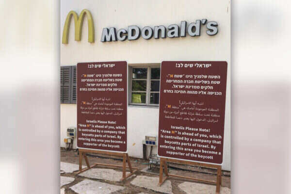 שלטים חריפים נגד הרשת מקדונלד'ס נתלו הבוקר (שלישי) בתל אביב ליד הסניפים, בהם נכתב: "שטח M - שטח בשליטת חברה המחרימה חלקים ממדינת ישראל, הכניסה אליו מהווה תמיכה בחרם זה".