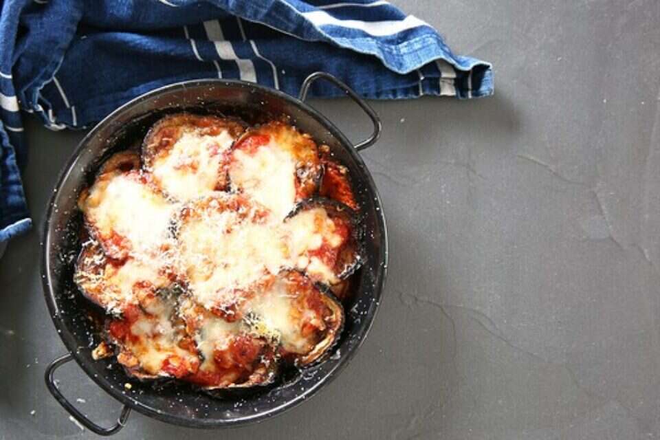 ראשונה נרקמת תבנית לוהטת של חציל פרמזן - מלנזנה פרמז׳אנה. מנה אייקונית שמקורה בדרום איטליה, מחוזם של החציל והעגבנייה. השניים נותנים ביטוי טעים למטבח ים־תיכוני שטוף שמש, אך תוספת של פרמזן מעניקה גוון ועומק איטלקיים מובהקים למנה הפשוטה והמענגת הזו.