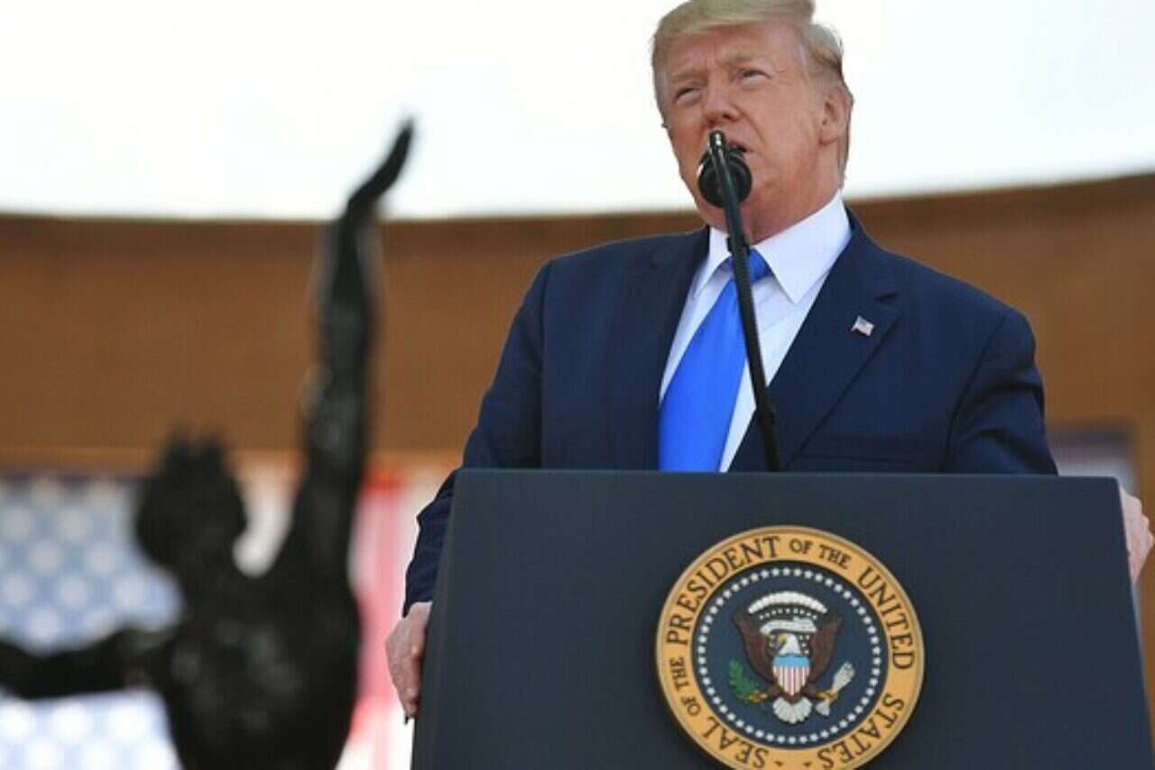 נשיא ארצות הברית טראמפ במהלך הטקס // ציון: איי.אף.פי // נשיא ארצות הברית טראמפ במהלך הטקס // ציון: איי.אף.פי
