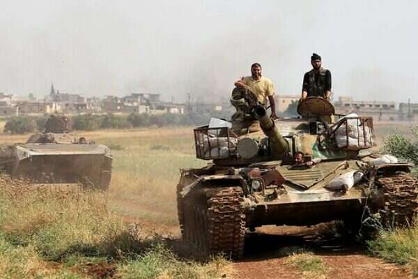 שיריון של המורדים נע לכיוון צפון מחוז חאמה // צילום: איי.פי