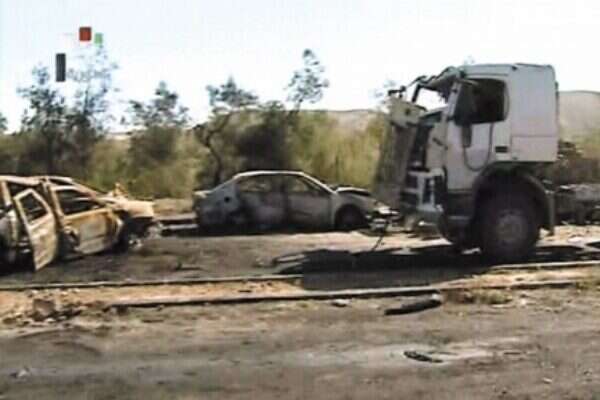 צילום: Syrian TV // The weapons convoy heading towards Lebanon, reportedly destroyed by Israeli jets.