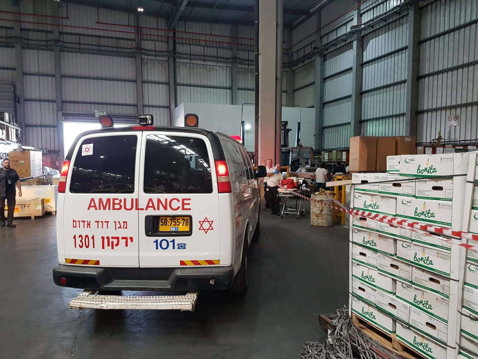 פראמדיק מד"א משה גלבשטיין וחובש רפואת חירום במד"א משה גבאי, סיפרו: "כשהגענו למקום ראינו שני גברים כבני 60 מחוסרי הכרה. מיד התחלנו בהענקת טיפול רפואי מציל חיים. אחד הפצועים נלכד מתחת לחפץ הכבד, ותוך כדי חילוצו הענקנו לו טיפול רפואי שכלל פעולות החייאה. מצבו היה קריטי ונאלצנו לקבוע את מותו. הפצוע השני סבל מפגיעה רב מערכתית, ולאחר טיפול רפואי במקום, פינינו אותו לבית החולים כשמצבו קשה והוא מורדם ומונשם".