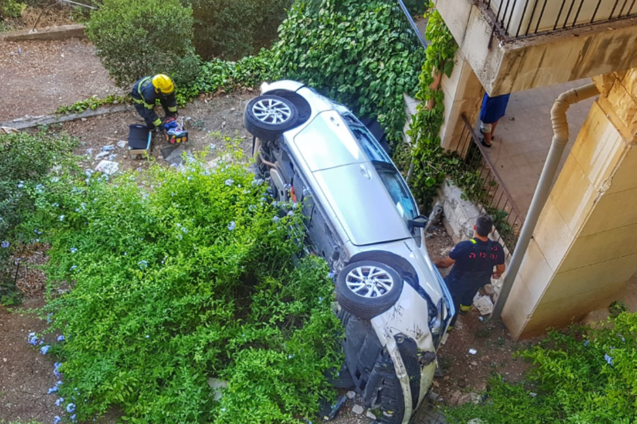 פרמדיק מד"א פאדי דקידק סיפר: "כשהגענו למקום ראינו רכב הפוך על צידו לאחר שנפל מגובה של כ-10 מטרים למפלס תחתון בחניית בניין מגורים, ברכב נלכדה הנהגת, אשה בשנות השמונים לחייה, כשהיא בהכרה מלאה. לאחר שכוחות הכיבוי חילצו אותה, היא סיפרה שהתאונה התרחשה כשנסעה לאחור בחנייה. היא סבלה מחבלות בפנים ובגפיים. הענקנו לה טיפול רפואי ופינינו אותה לבית החולים כשמצבה בינוני ויציב".