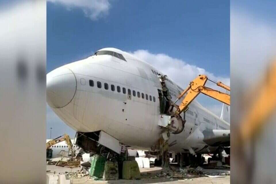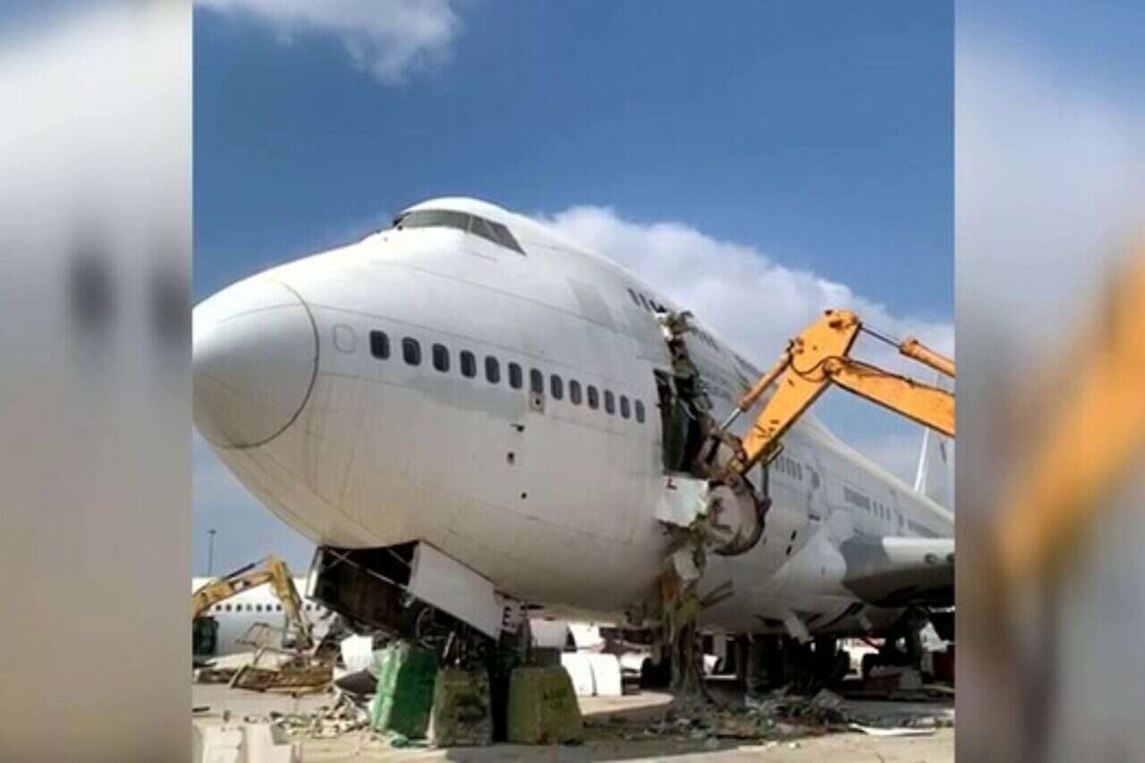 מטוס ה-747 שנגרט היום נרכש מסינגפור איירליינס לפני כ-11 שנים, והוצא משימוש בחברה כבר לפני כשנתיים, עם כניסת הדרימליינר הראשון לשירות. המטוס שימש עד כה כמעין זירת אימונים בנתב"ג, אך היום כאמור, לאחר הורדתו לגובה קרקע, הוא נגרט, ובימים הקרובים הפסולת של שני המטוסים תפונה ותועבר למחזור.